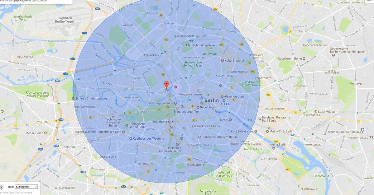 Google Maps: Rita en radie – visa enkelt rörelseradien